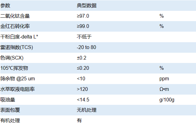 R-K95是一种使用无机包膜和锆、铝有机表面处理的金红石型二氧化钛颜料。小粒径金红石型二氧化钛颜料经无机包覆和有机处理,使其适用于广泛的塑料应用。