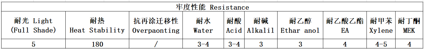该品种适用于各种印墨,色光符合四色版规定的品红色,具有高着色力、良好耐光牢度4~5级(1/1SD);合成时加入吐氏酸可改变粒径和色光;色淀在水性醇介质中由于金属离解,发生金属离子的置换作用,导致碱性印墨存放时变稠,为防止印墨的变稠,可选用C.I.颜料红184(混合偶合的产品)替代;在乳胶漆以及塑料中应用(软质PVC,LDPE),作为食品红No.7使用。近50个公司推出约265个牌号商品。